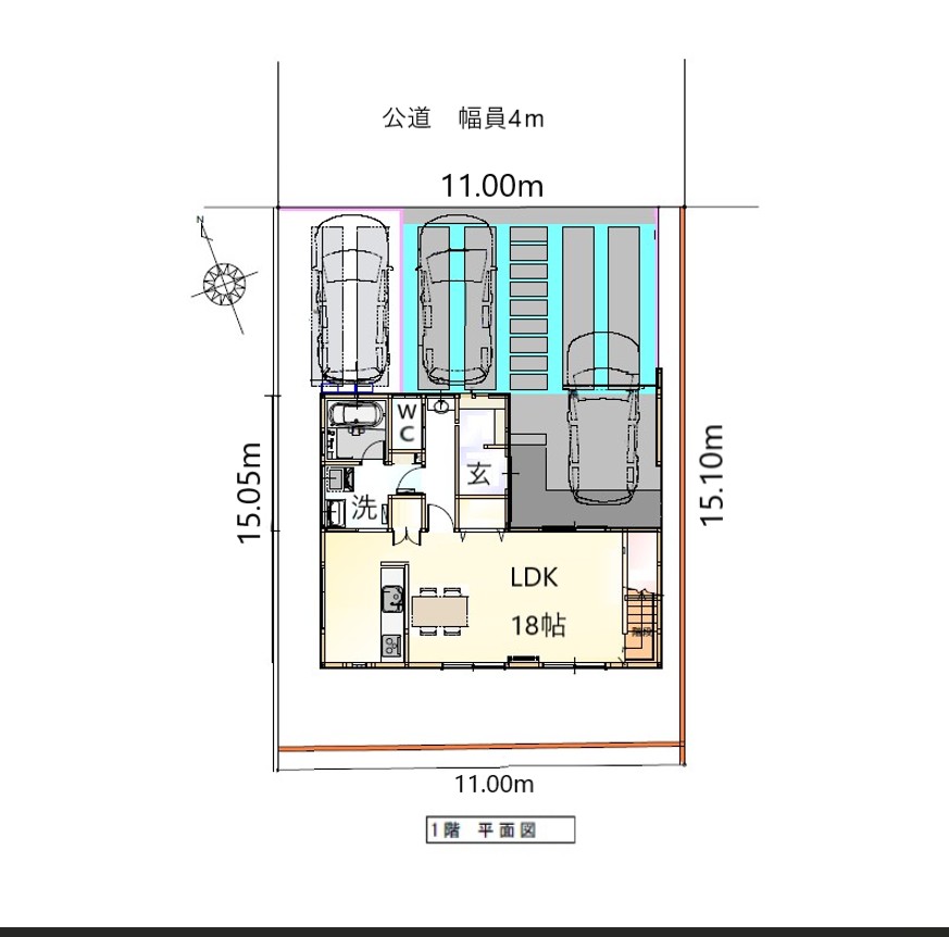 | 接道状況 | 向き:北東 道路幅:4m 接道幅(間口):11m |